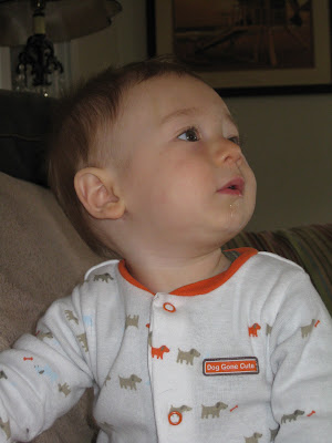 He is moving pretty quick these days. His favorite food is still peas. Although he is now enjoying chicken baby food and chicken noodle.